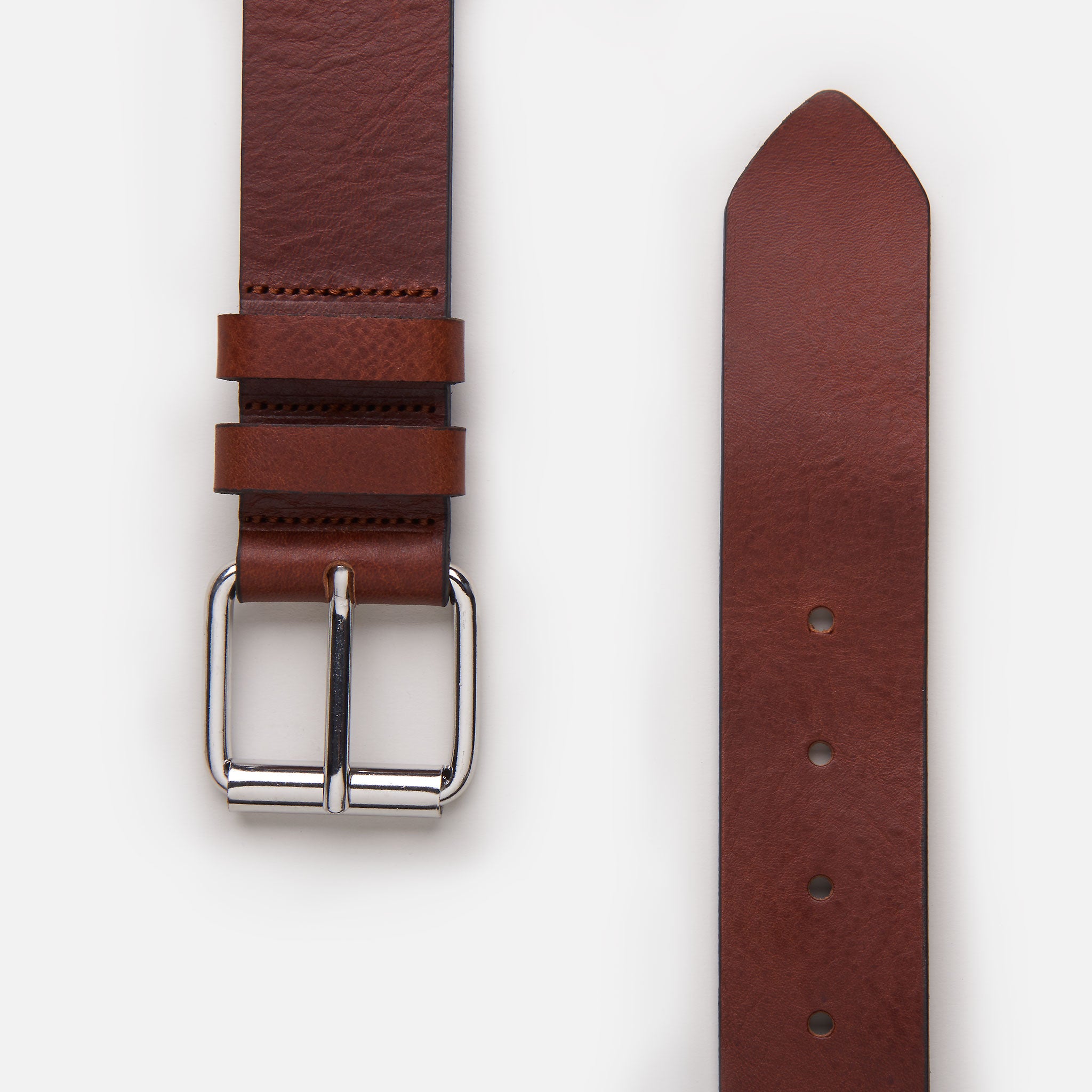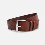 Belt in brown vegetable tanned leather. 40 mm wide. Made in Sweden.