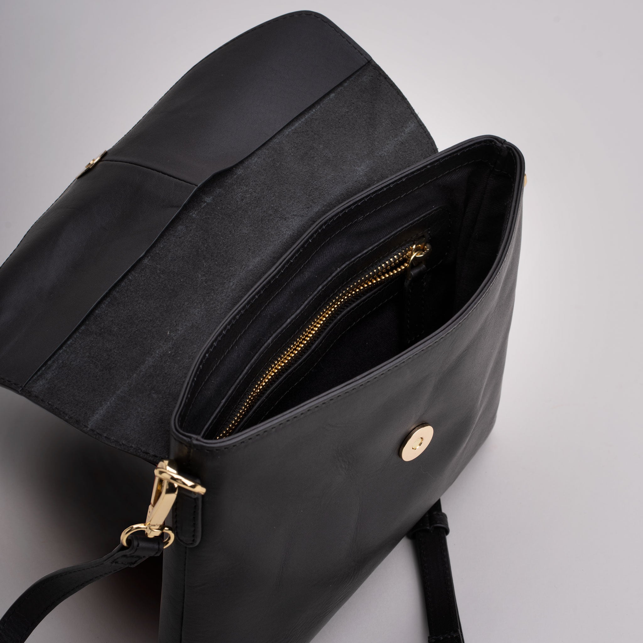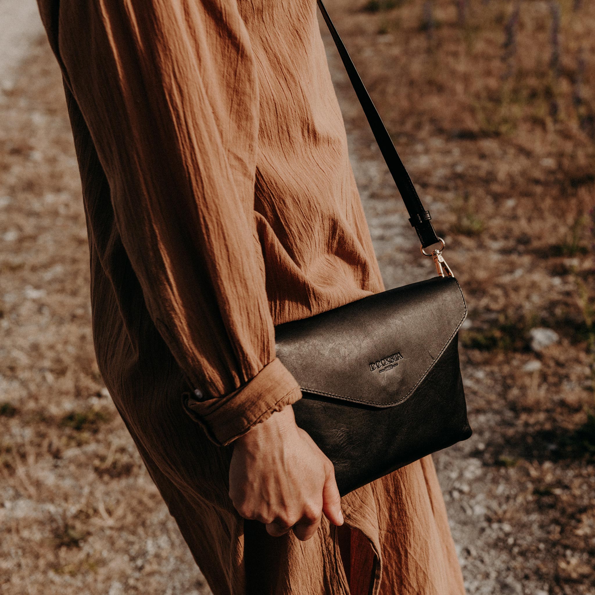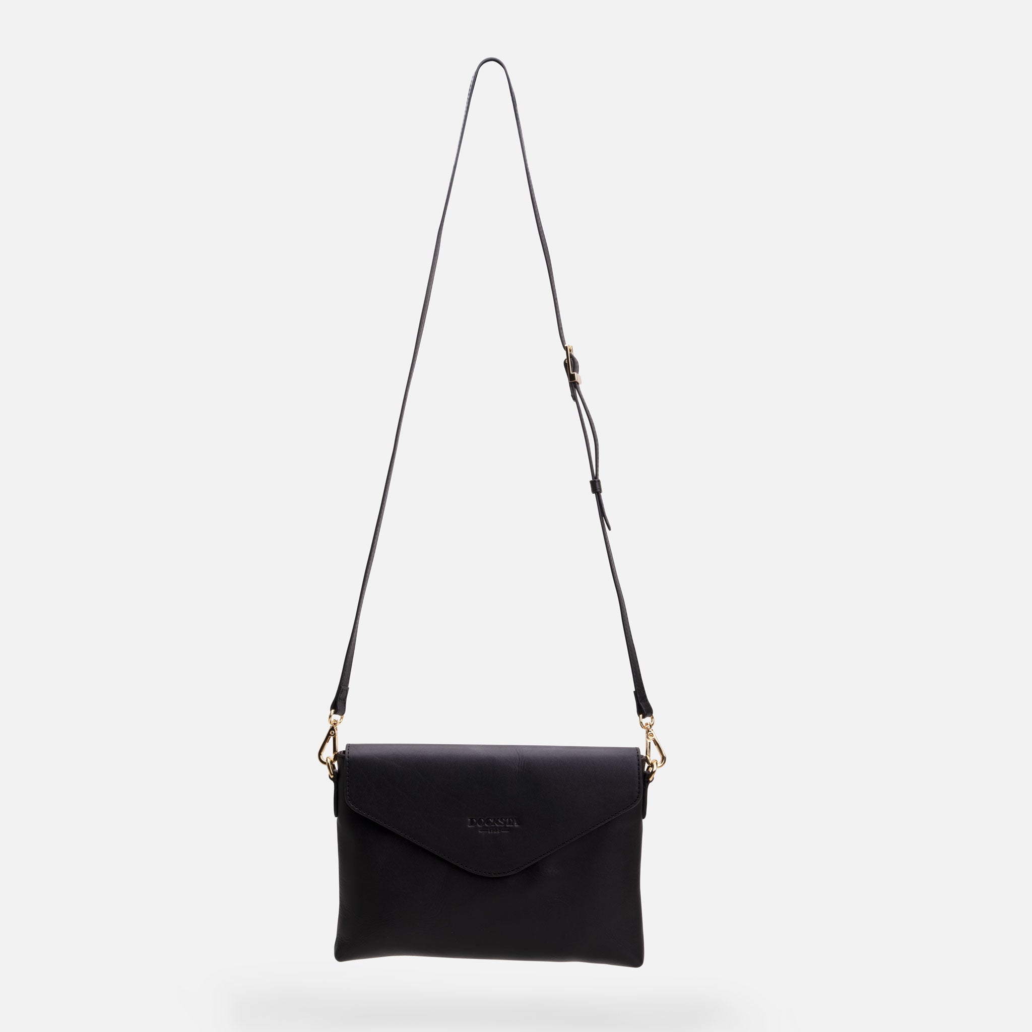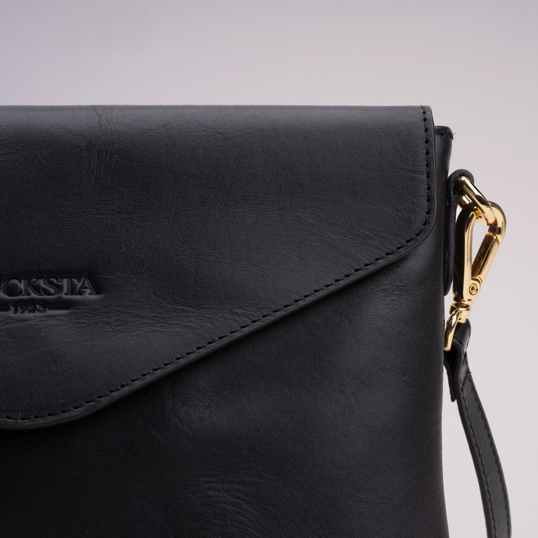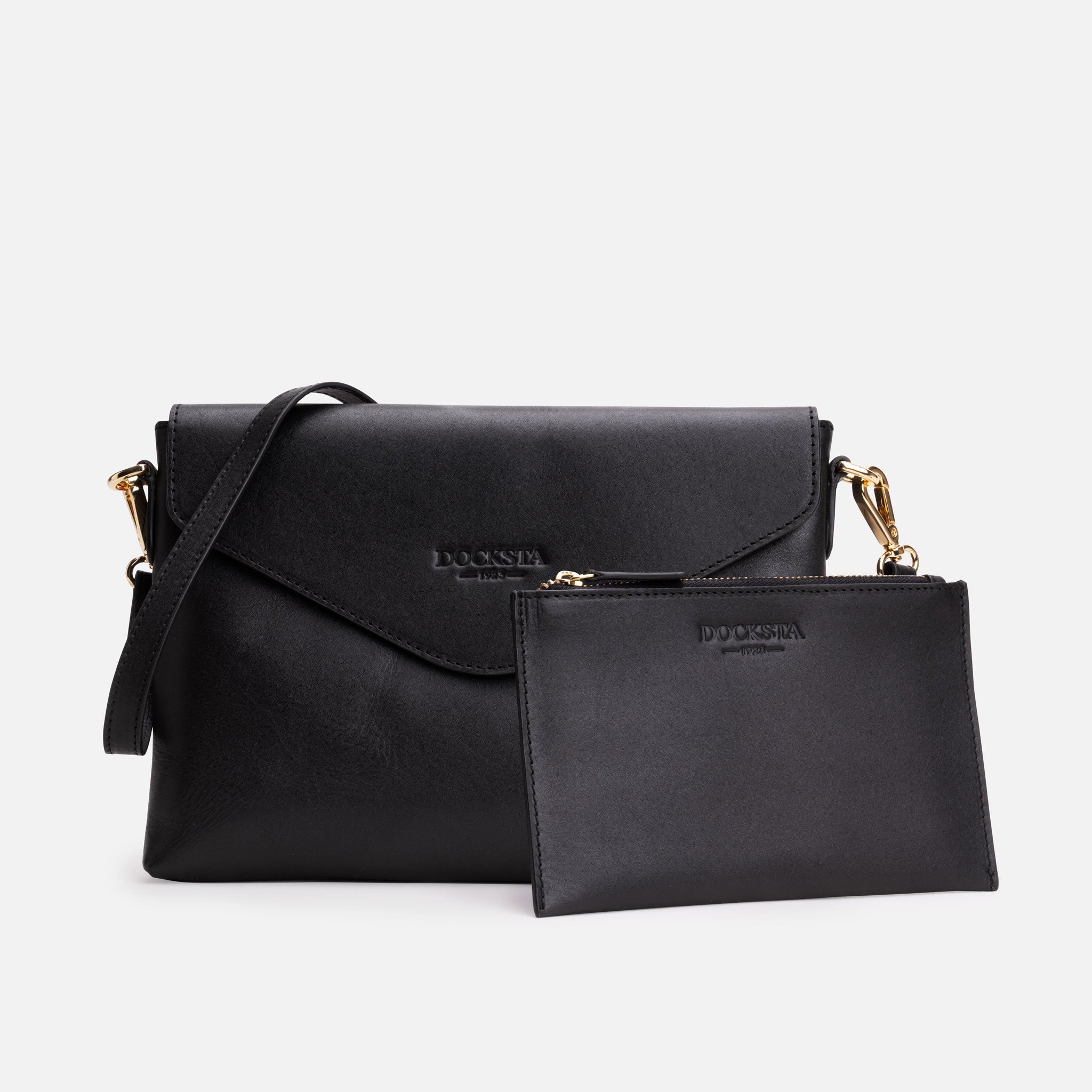 The Mika clutch bag with matching toiletry bag in fine soft vegetable tanned leather. The length of the shoulder strap can be adjusted or removed. The bag has a small pocket with a zipper. The lid closes with a press stud. Size: 25x18x4