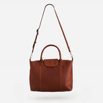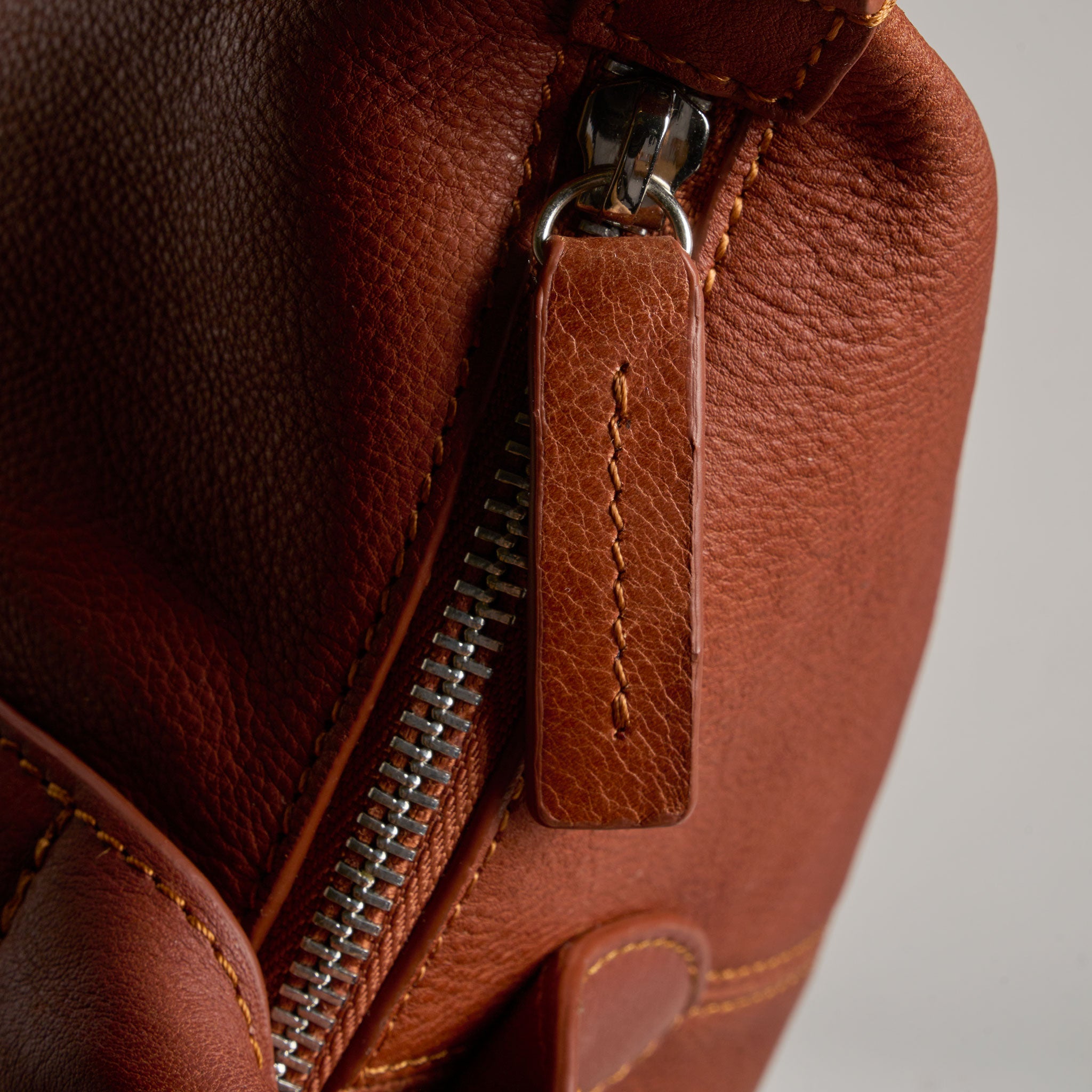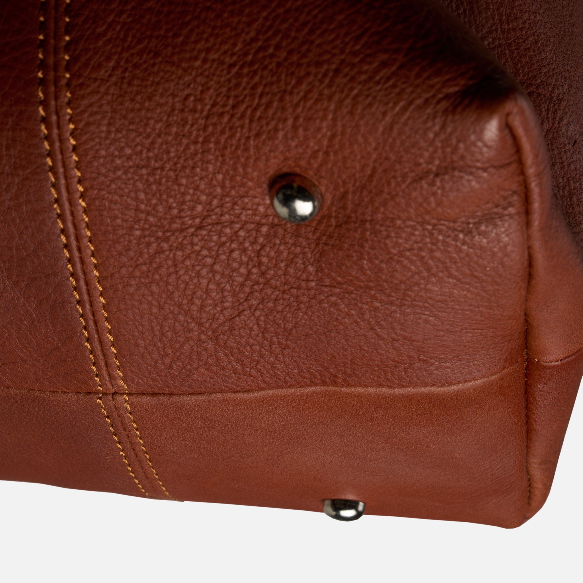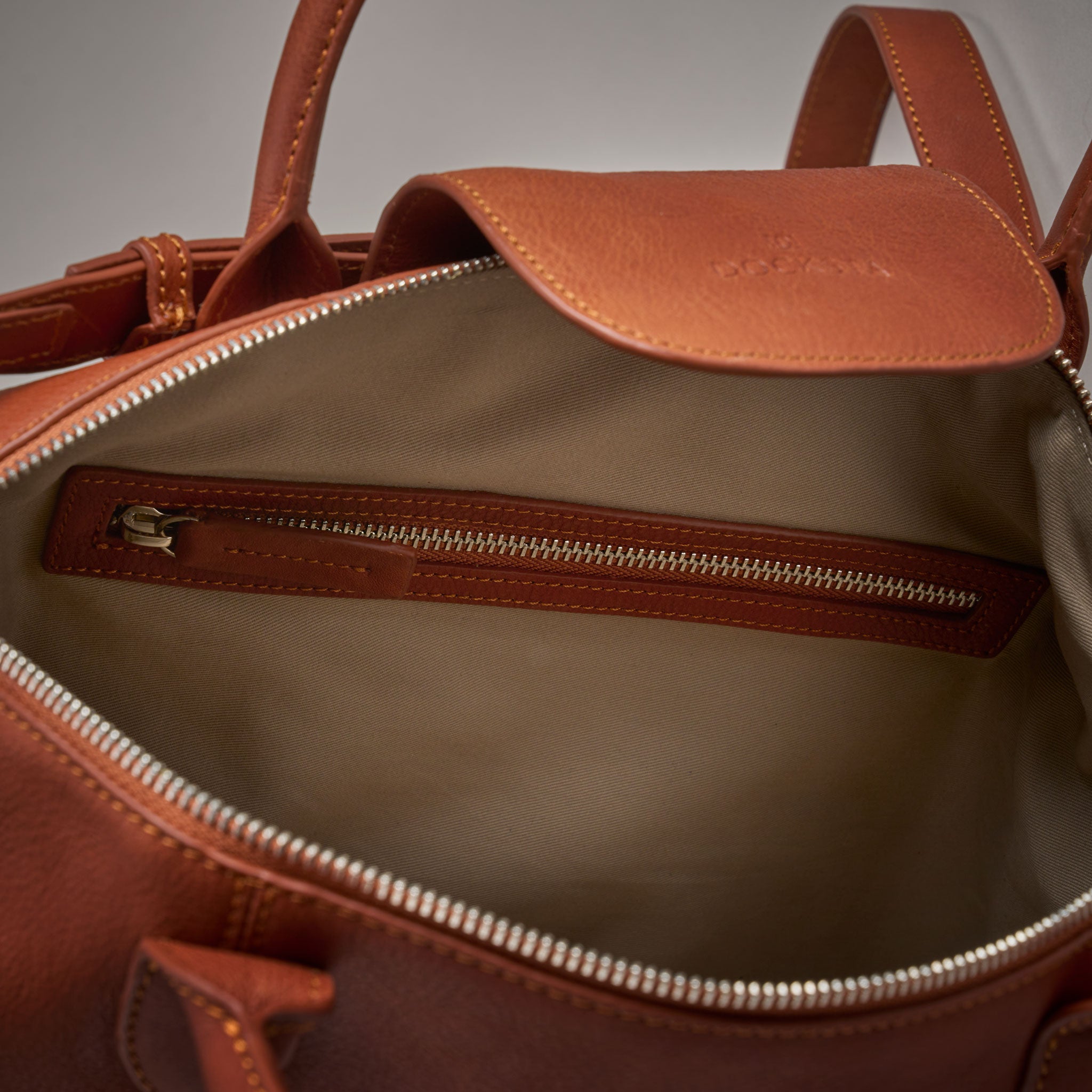 Handbag in brown vegetable tanned leather that will be passed down for generations. The bag holds a laptop and has a zippered pocket and two compartments that make it easy to organize your things. All zippers are from the YKK Excella brand, which stands for high quality. Adjustable shoulder strap and a stable bottom with round feet that makes it stand firmly without falling. The bag comes with a dustbag that protects your bag when you are not using it. Size: 40x28x16 cm