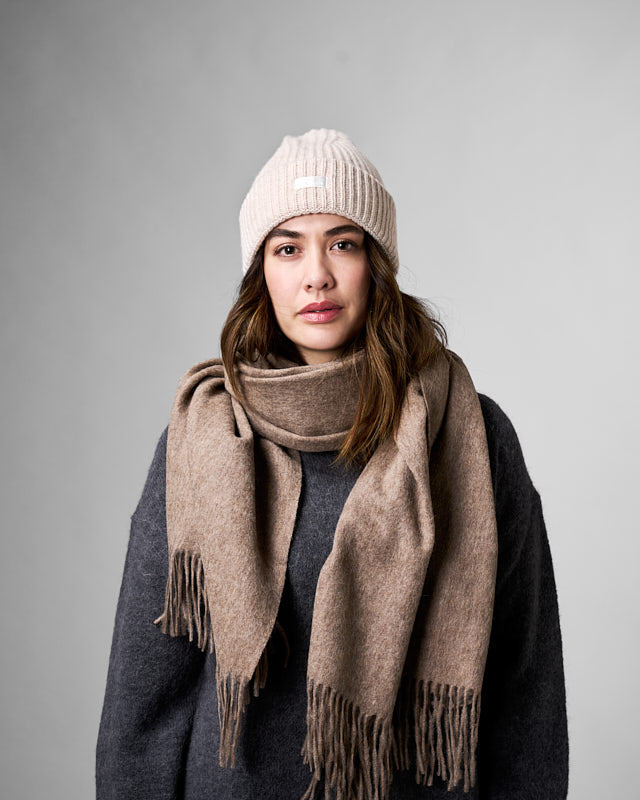 White knitted hat. Size: One size Material: 100% extra fine merino wool. Washing instructions: Hand wash with cold water and wool detergent