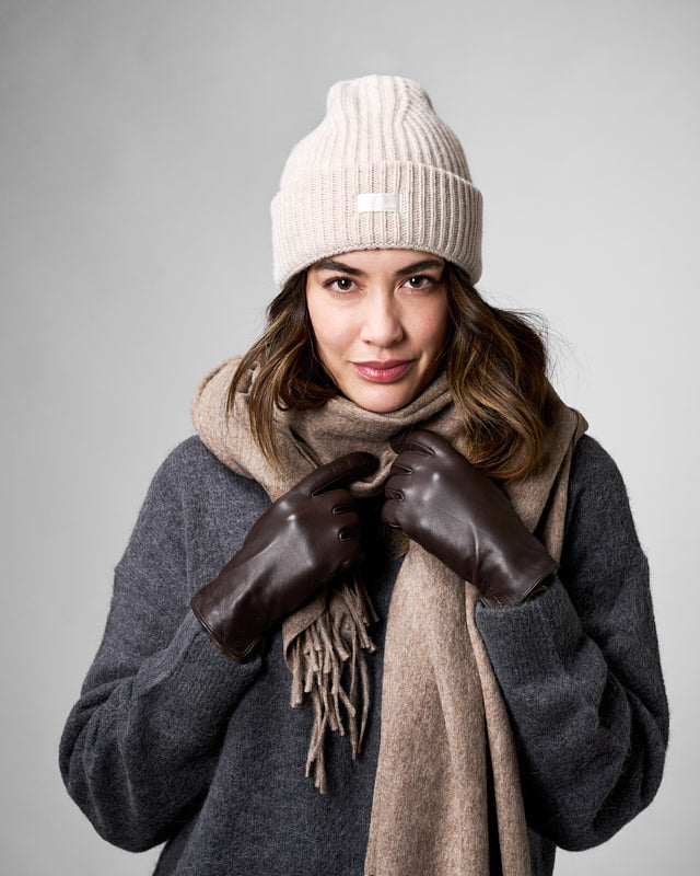 Soft lambskin and 100% wool lining. The gloves have a nice fit with fine seams. Docksta is embossed on the side. Available in sizes 7=S, 7.5=M, 8=L, 8.5=XL