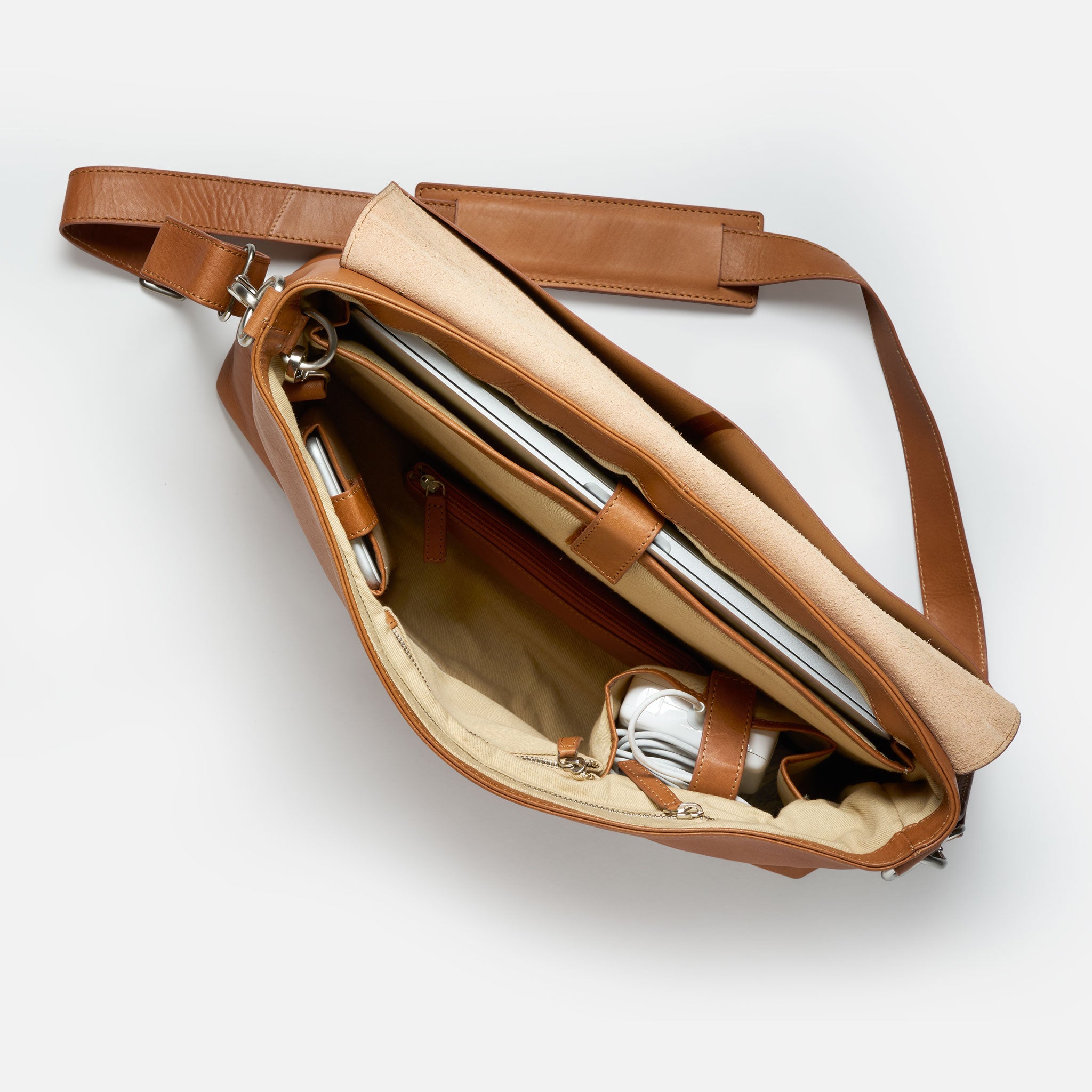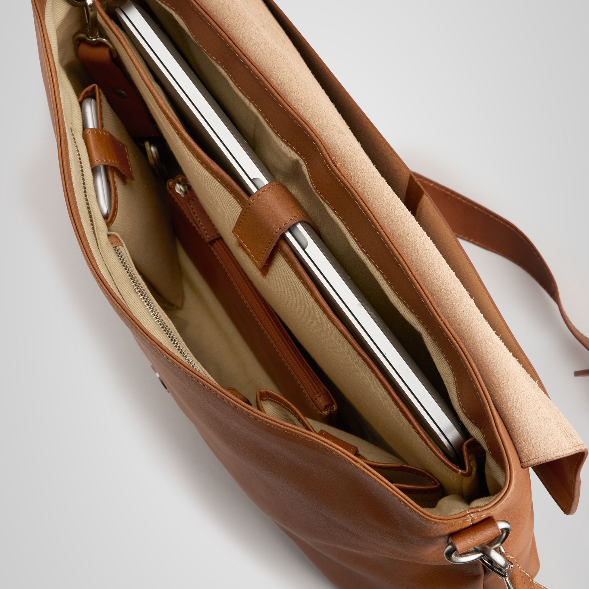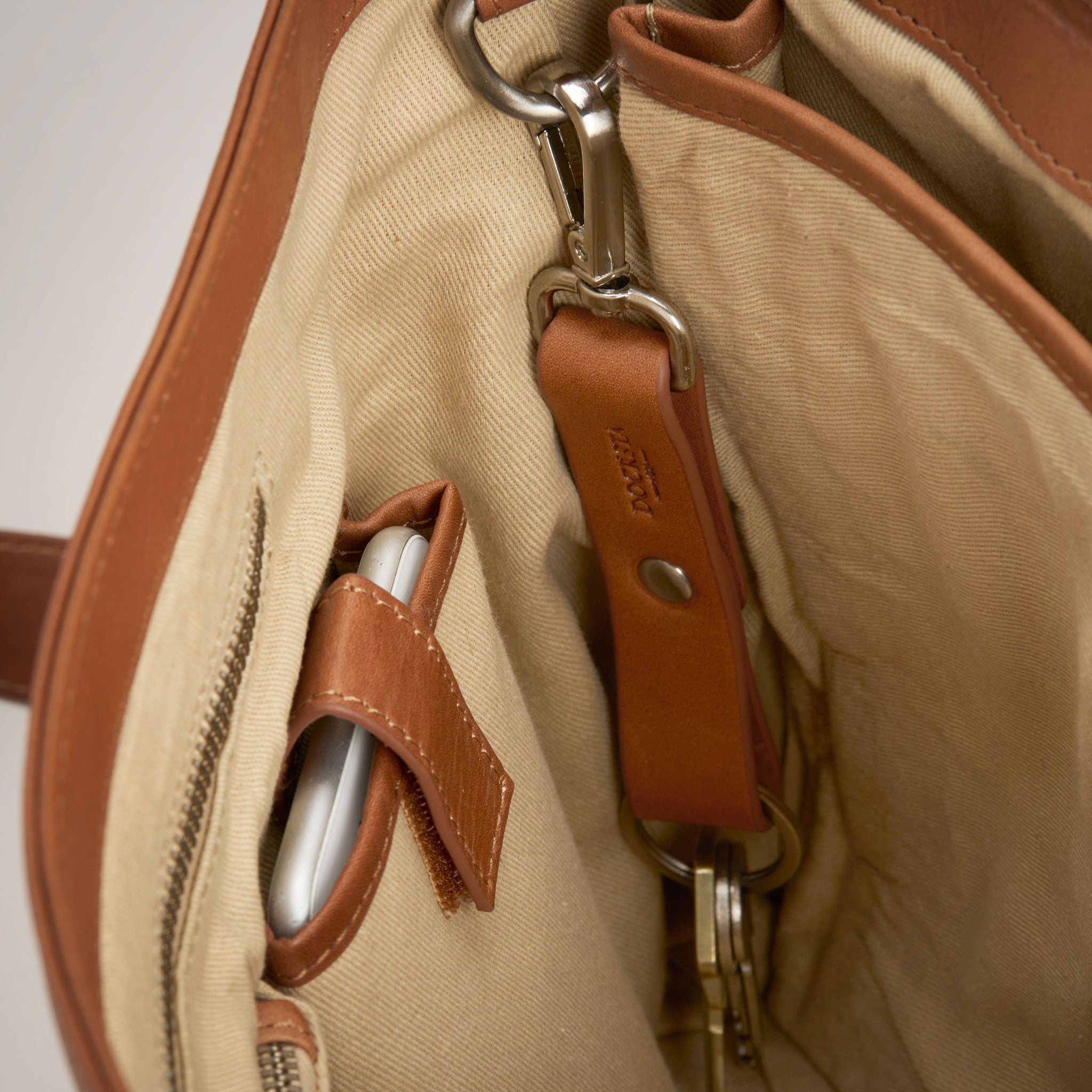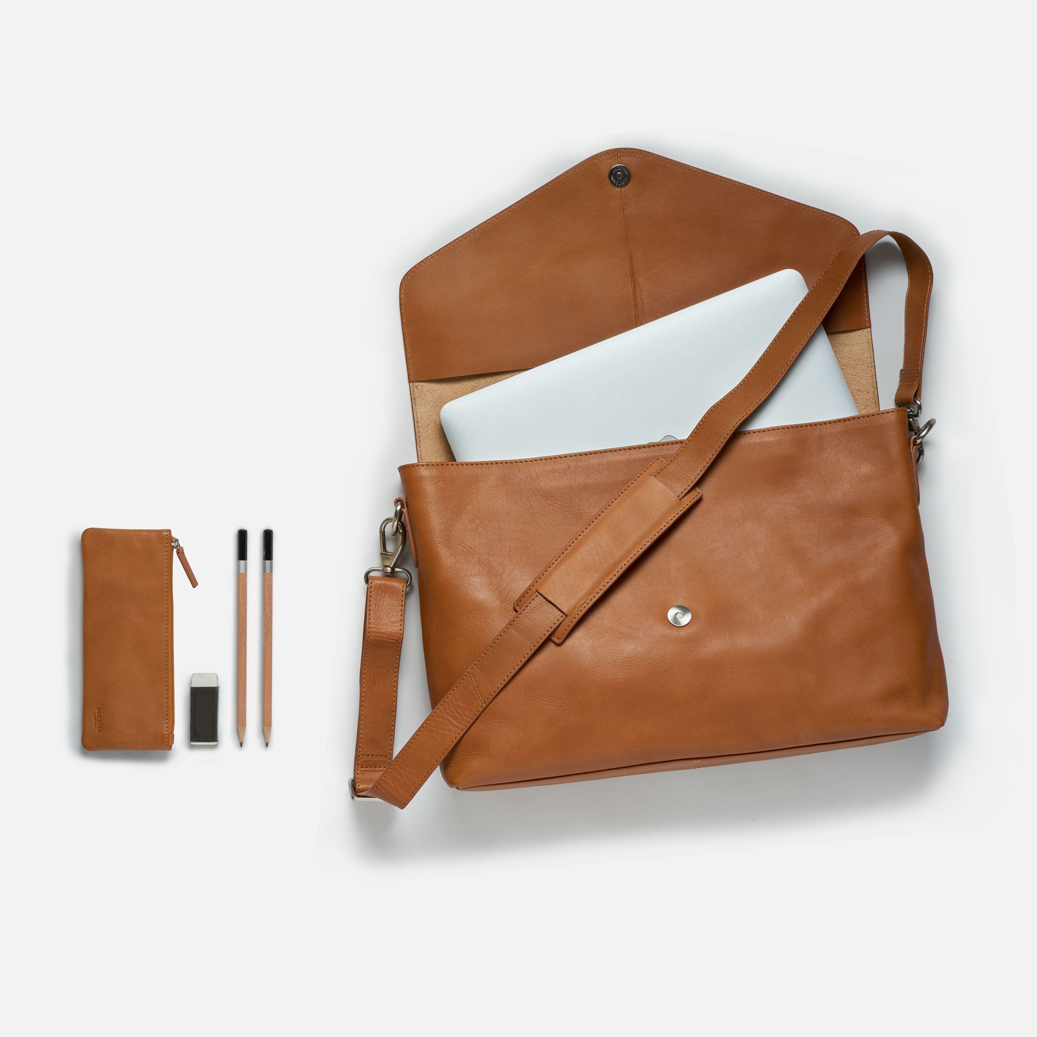 Docksta Mika laptop bag is a functional bag designed to protect your computer and structure your digital everyday life. The computer bag easily holds a 15 inch computer and has several compartments for charger, mouse, notepad, glasses case and mobile phone. It also comes with a stylish pen case in the same leather to keep pens and small items organized. The keychain that comes with the bag can be hooked to a ring inside the bag to quickly find your keys.