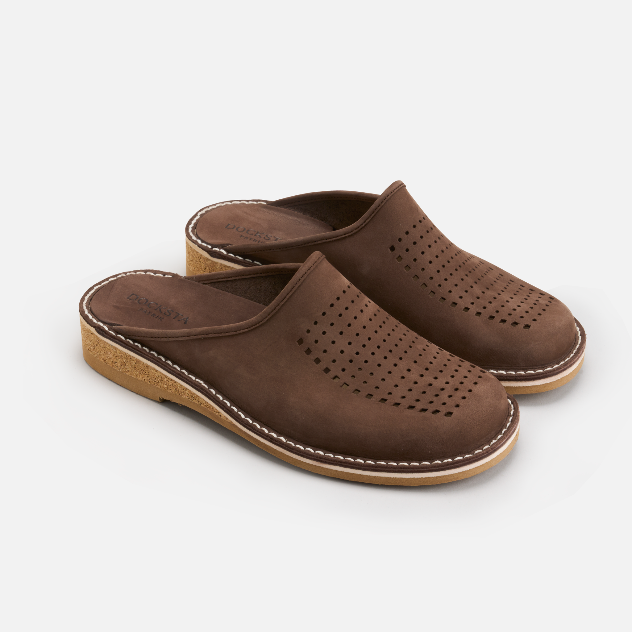 Docksta slippers are manufactured in the High Coast. The slippers are comfortable to use both indoors and outdoors, and are just as suitable for work as they are at home. When the sole wears out, we can offer repairs on your favorites, giving your shoes a long lifespan.