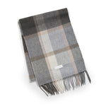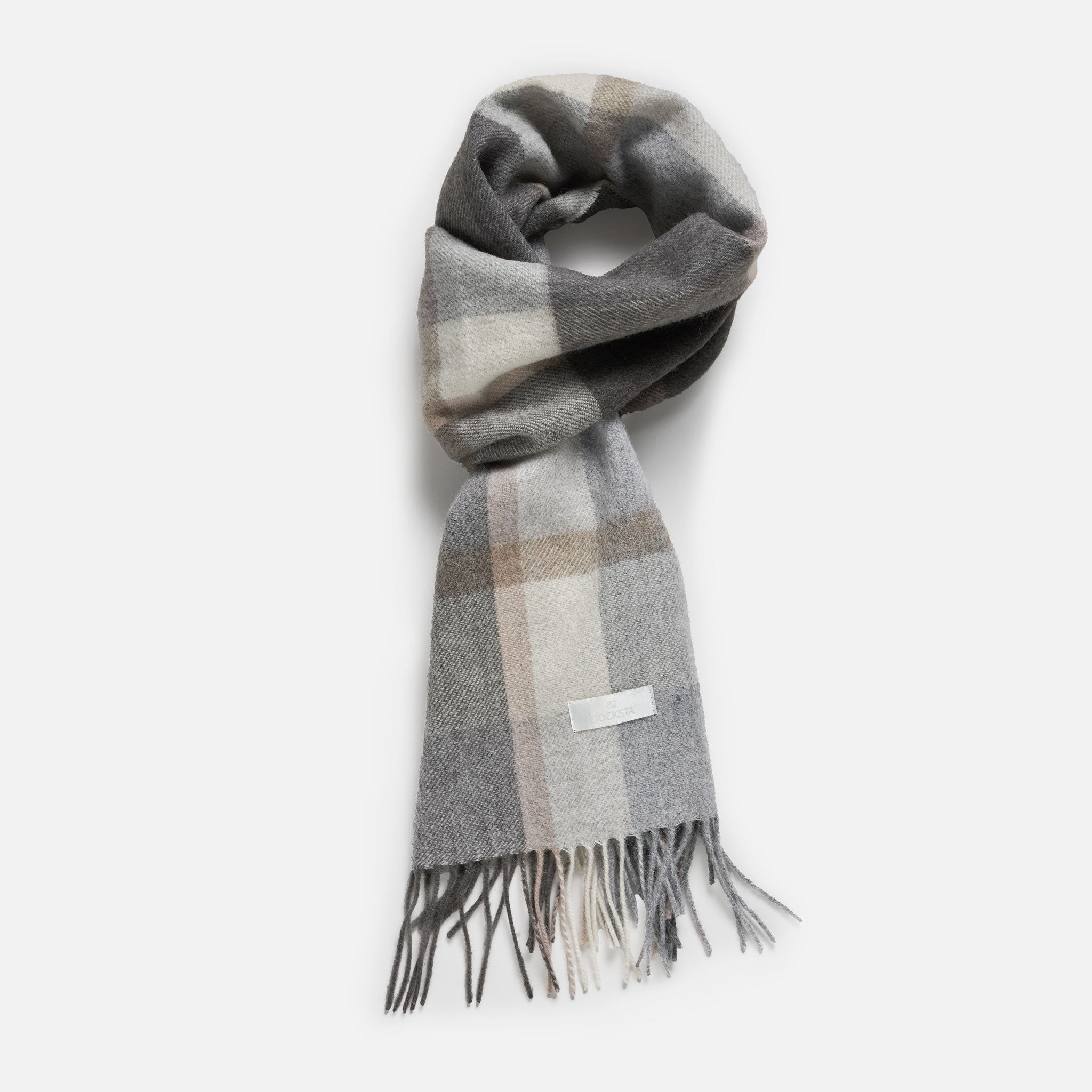 Checked scarf with fringes. Size: 30*180 cm Material: 100% extra fine merino wool. Washing instructions: Hand wash with cold water and wool detergent.