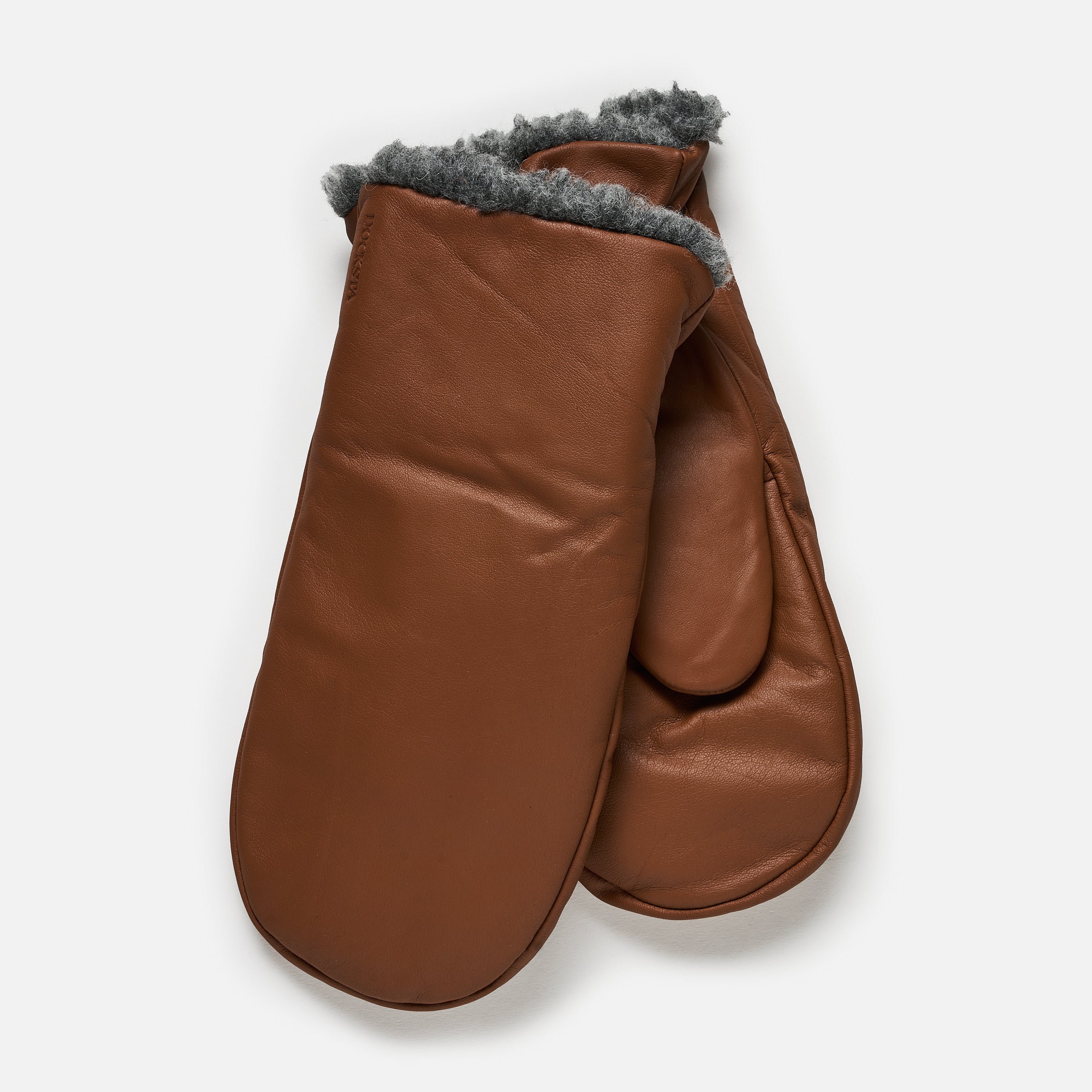 Varm och härlig tack vare kombinationen av mjukt läder och ett isolerande foder i ullblandning. Den klassiska tummodellen och den diskreta resåren vid handleden håller värmen kvar och stänger ute vinterkylan.