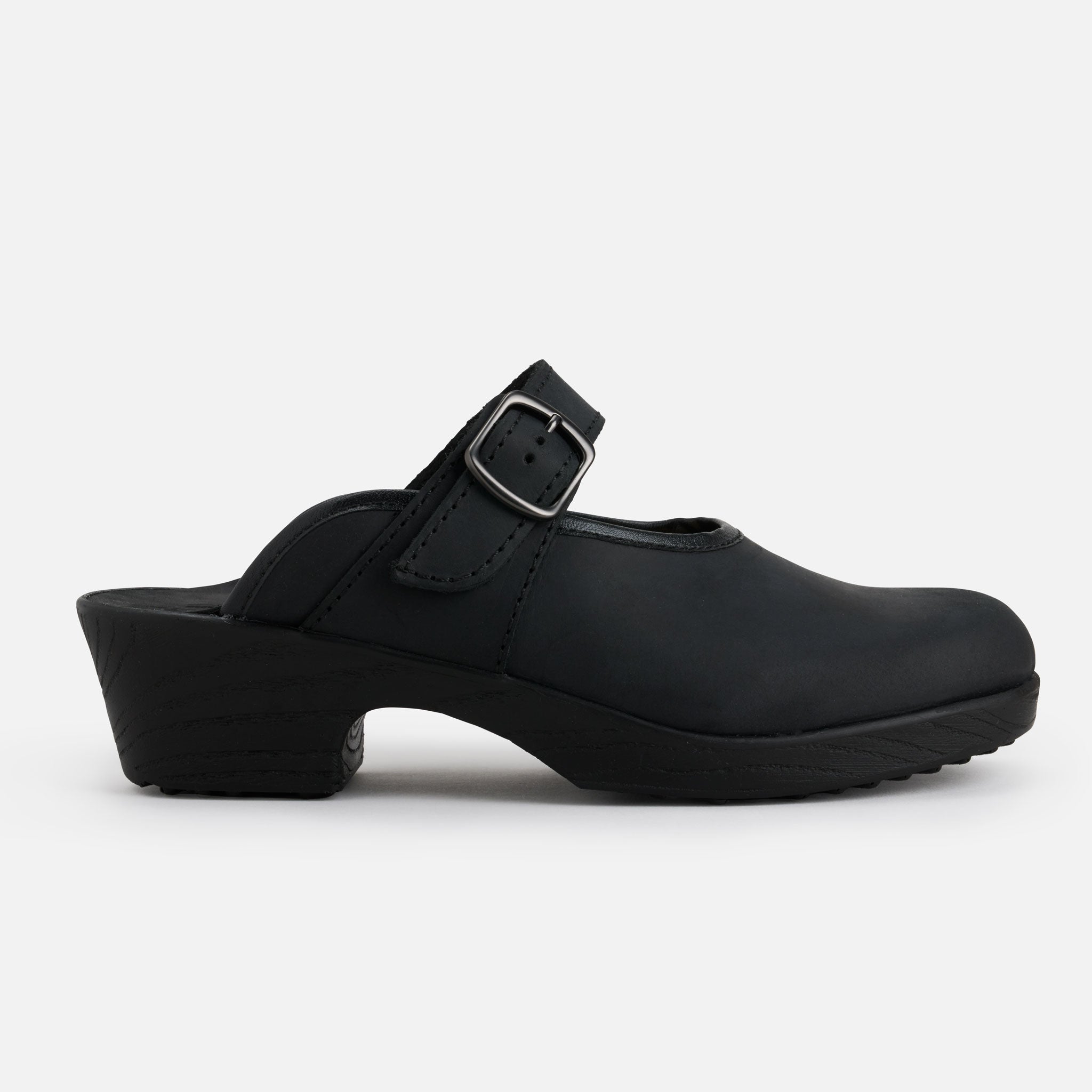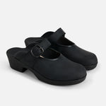 Women's clogs Ballerina Black Leather with buckle