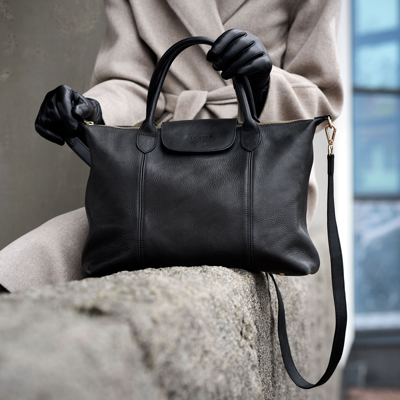 Handbag in black vegetable tanned leather that will be passed down for generations. The bag holds a laptop and has a zippered pocket and two compartments that make it easy to organize your things. All zippers are in the YKK Excella brand which stands for high quality. Adjustable shoulder strap and a stable bottom with round feet that makes it stand firmly without falling. The bag comes with a dustbag that protects your bag when you are not using it. Size: 40x28x16 cm