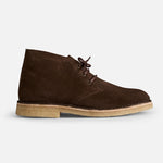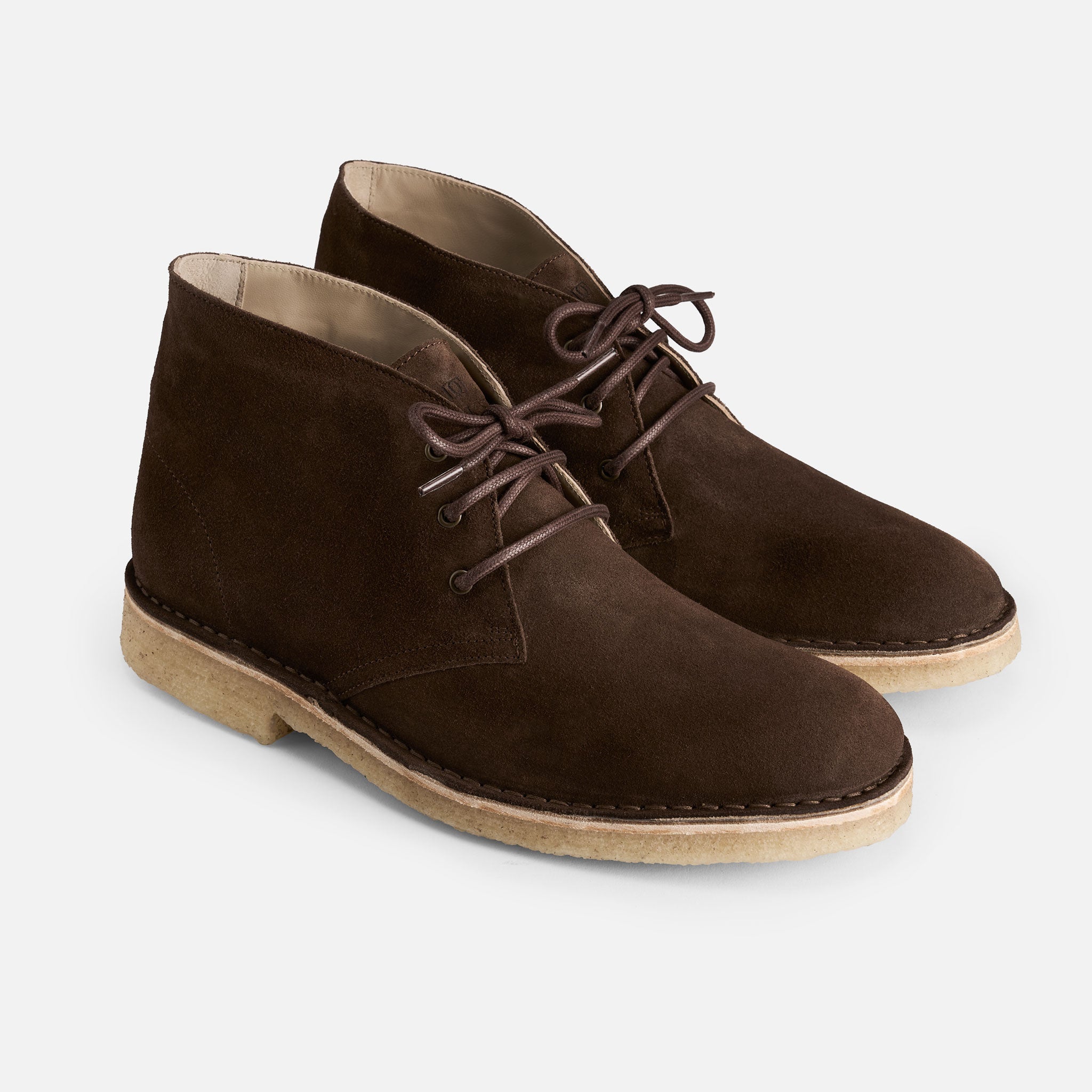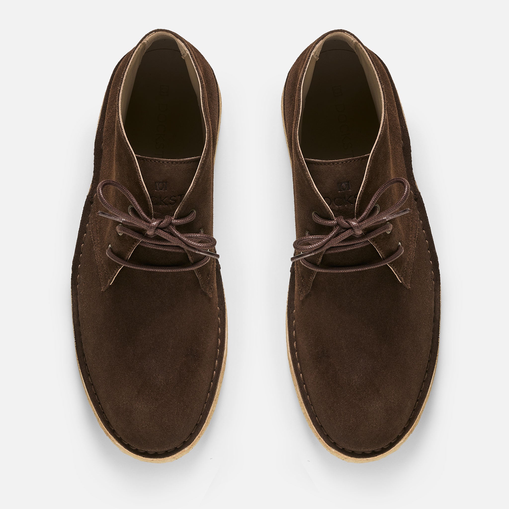 The Docksta desert boot has an upper in black suede that is impregnated, which helps keep water and dirt away. The leather is pinned to a leather midsole (midsole) with a stitchdown construction where the seam has been sewn through the sole for longer durability. A shank is located at the arch to give stability to the shoe. The outsole consists of creped natural rubber that can be replaced by a shoemaker after wear. The inside of the boot has a fine aniline leather that breathes well and a removable cushioned insole, also in leather, for better comfort.