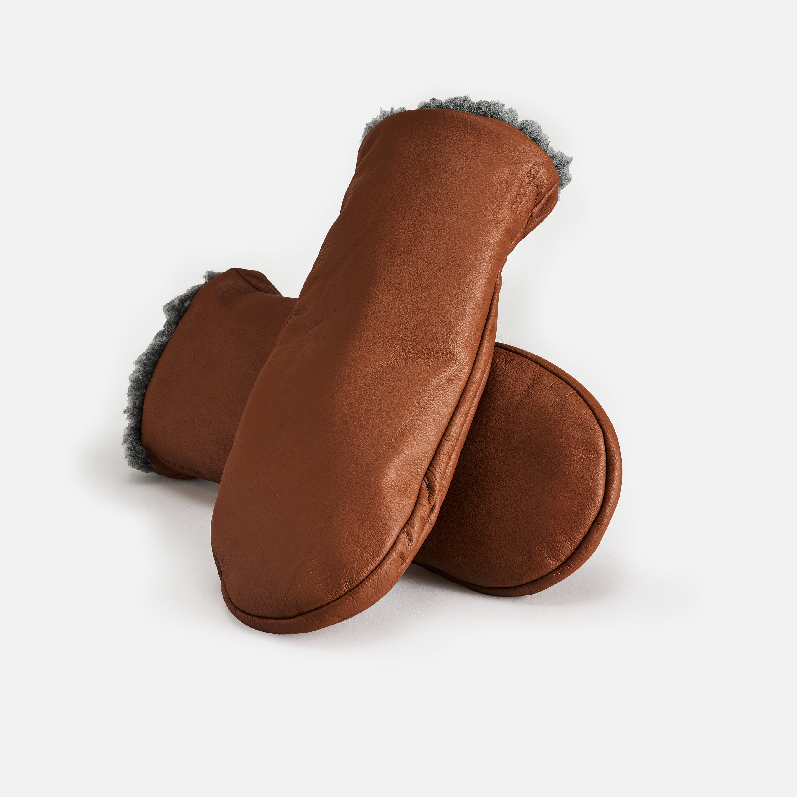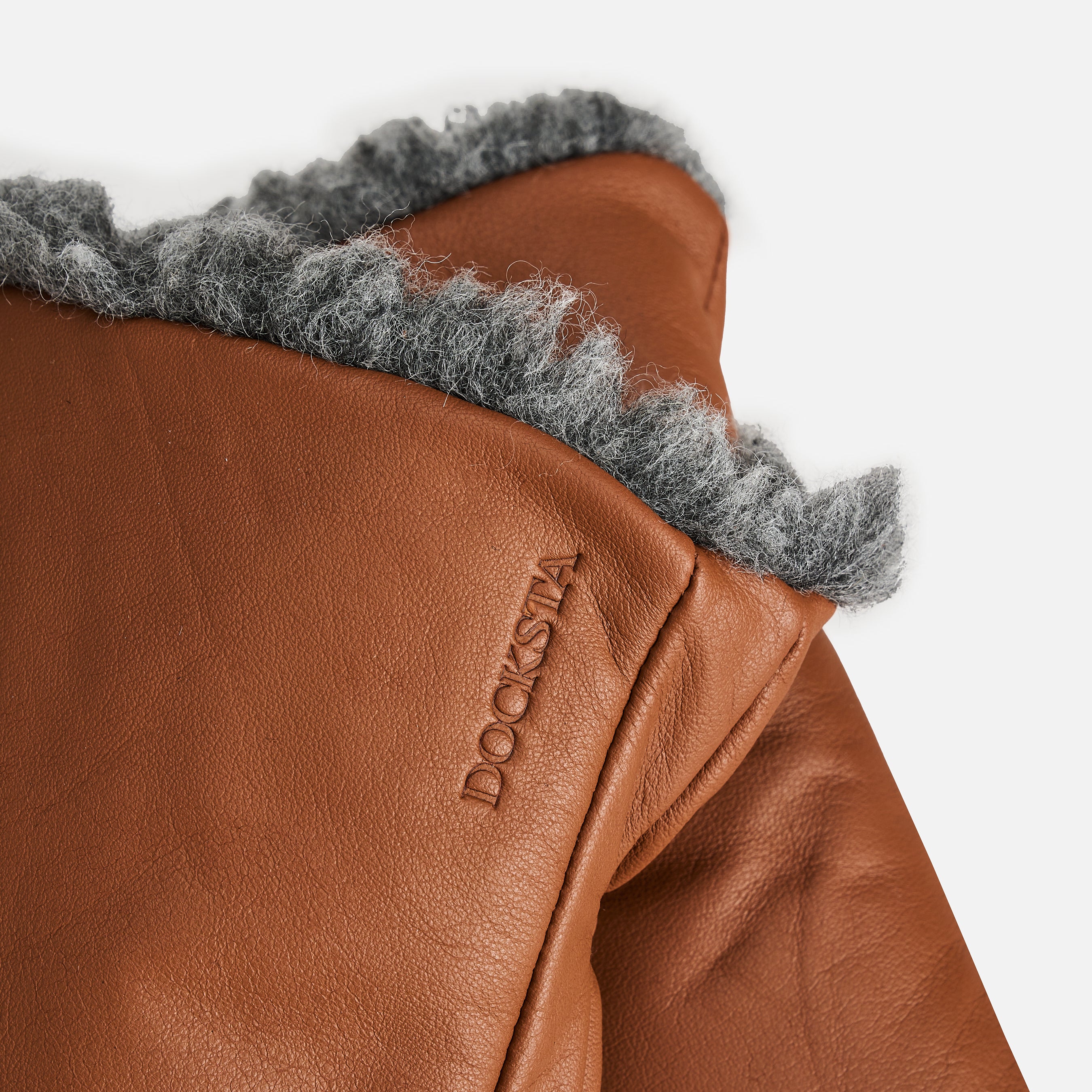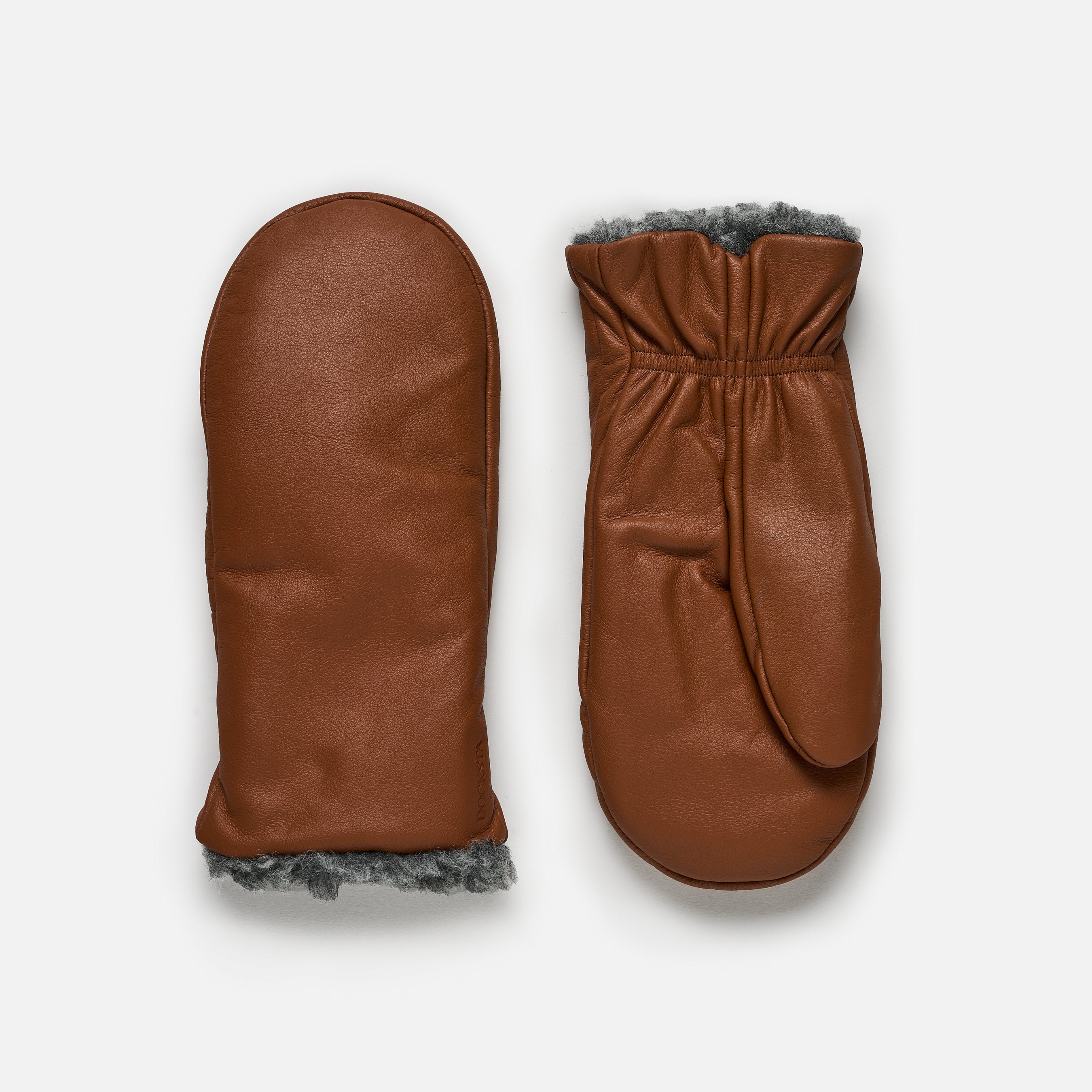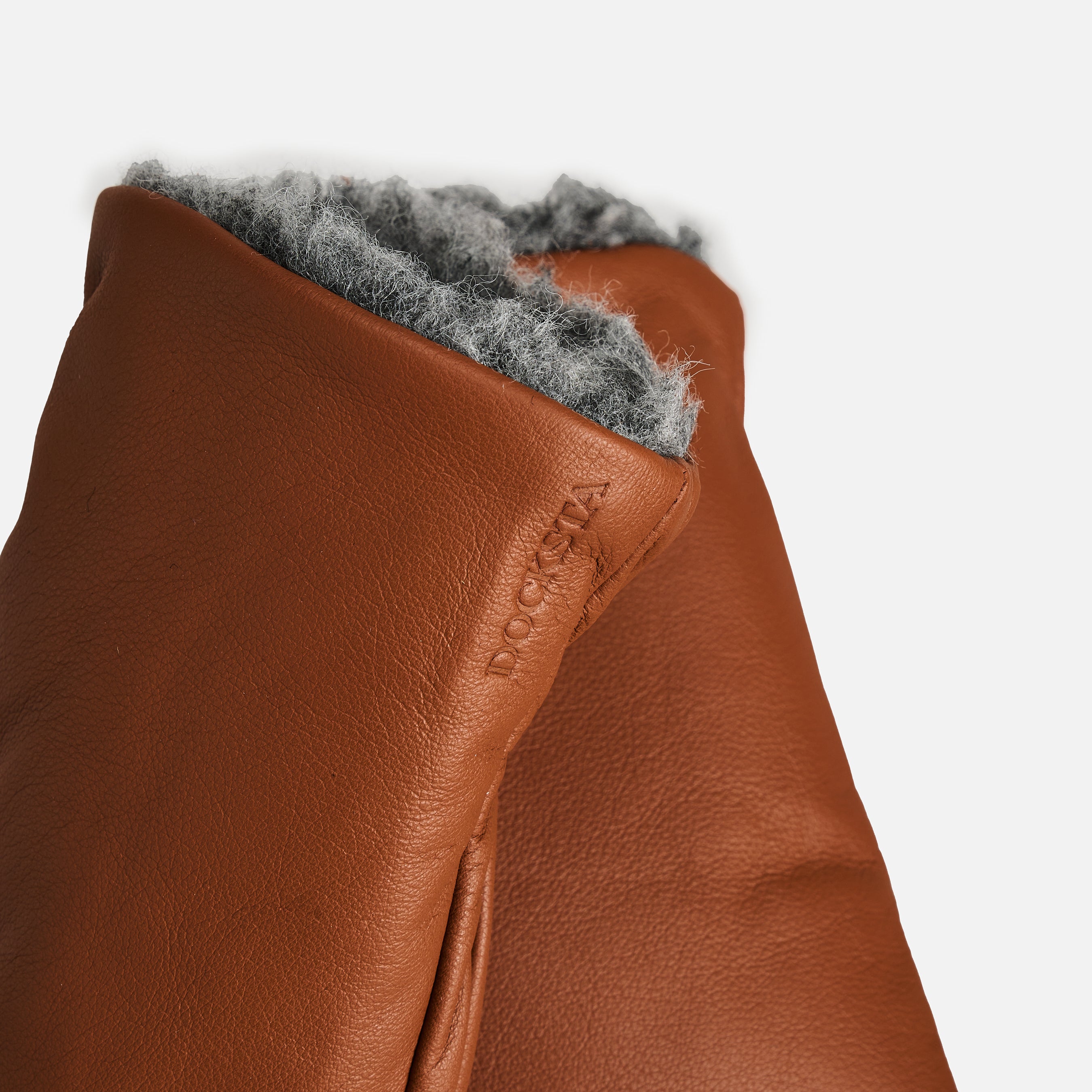 Varm och härlig tack vare kombinationen av mjukt läder och ett isolerande foder i ullblandning. Den klassiska tummodellen och den diskreta resåren vid handleden håller värmen kvar och stänger ute vinterkylan.